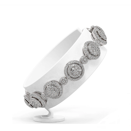 Luxury Designer Brand Bracelet 18K White gold, Bracelet Size is 7 Inches Long, Bracelet measuring approx. 1/2x7 inch, Main stone 10.5 carat total weight containing 568 pieces of I-J color with VS/SI quality Round shape cut Diamond , Stone #2 carat total weight containing pieces of color with quality shape cut