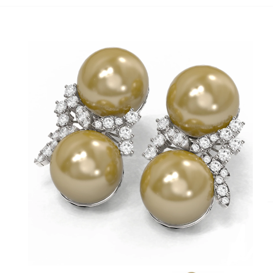 Luxury Designer Brand Stud 18K White gold, Stud Size is 2/3x1 inch Long, Stud measuring approx. 2/3x1 inch, weighing in total approx. 5 grams. stamped 18K, Main stone carat total weight containing 4 pieces of High Luster color with AA quality Round shape cut Pearl , Stone #2 0.96 carat total weight containing 38 pieces of I-J color with VS/SIquality Round shape cut Diamond