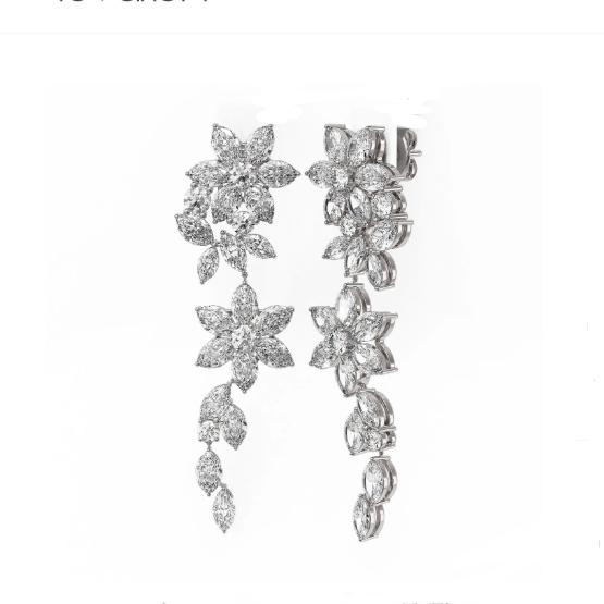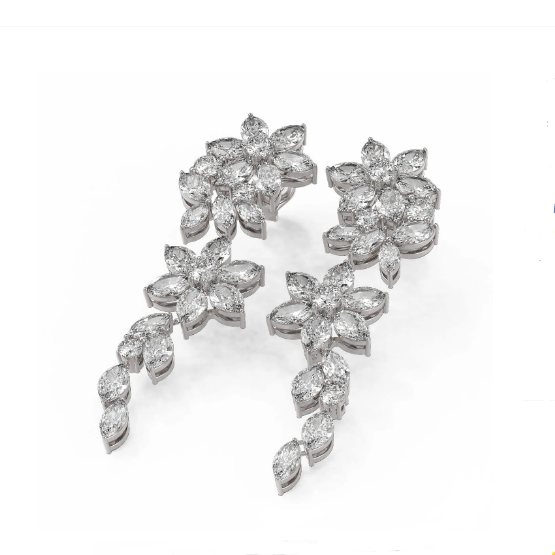 Luxury Designer Brand Earring 18K White gold, Earring Size is 2/3x1 3/4 inch Long, Earring measuring approx. 2/3x1 3/4 inch.Main stone 6.6 carat total weight containing 30 pieces of I-J color with VS/SI quality Marquise shape cut Diamond , Stone #2 1.52 carat total weight containing 10 pieces of I-J color with VS/SIquality Marquise shape cut Diamond , Stone #3 1.13 carat total weight containing 10 pieces of I-J color with VS/SI quality Round shape cut Diamond