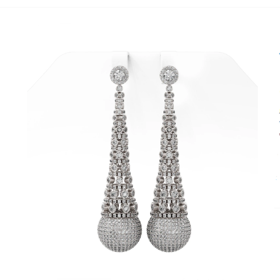 Product Profile:18K White Gold Fully Paved Diamond Dangling Earring