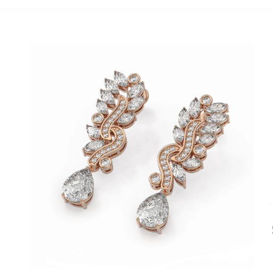 Product Profile:18K Rose Gold Dancers Dangling Pear Diamond Earring