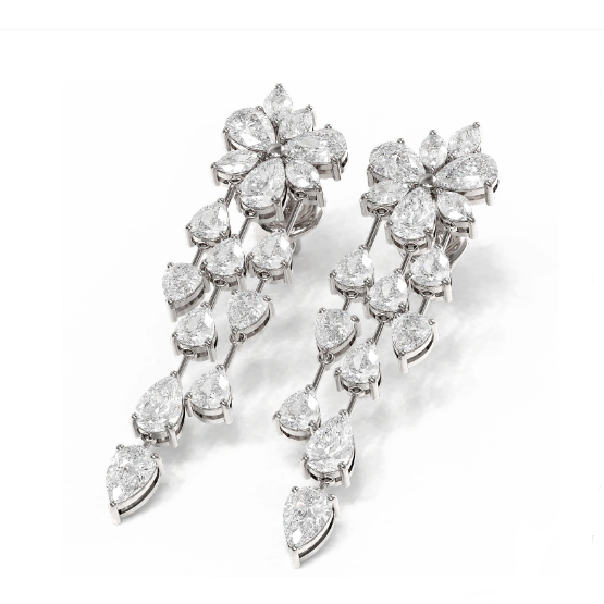 Product Profile:K gold 3 grading dangling four petals floral diamond earring