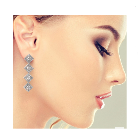 Princess Cut Diamond Surrounding Square Dangling Earring