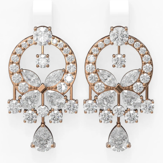 18K Rose Gold Diamond Dropping Floral Dangling Earring