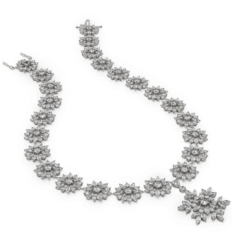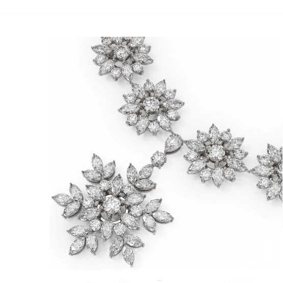 18K White Gold Flocked Leaves Pear and Marquise Cut Diamond Necklace