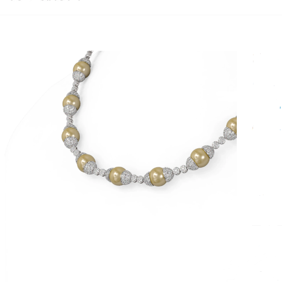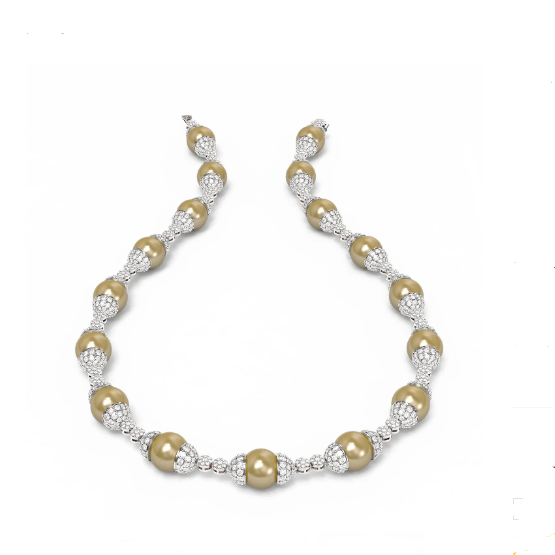 18K White Gold Fully Paved Golden Pearl Diamond Lantern Necklace