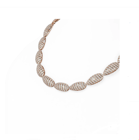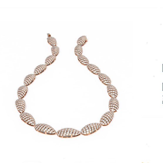 Luxury Designer Brand Necklace 18K Rose gold, Necklace Size is 16 inches, can custom fit length, Necklace measuring approx. 1/3x16 inch, weighing in total approx. 44 grams.Main stone 27.4 carat total weight containing 731 pieces of I-J color with VS/SI quality Round shape cut Diamond.
