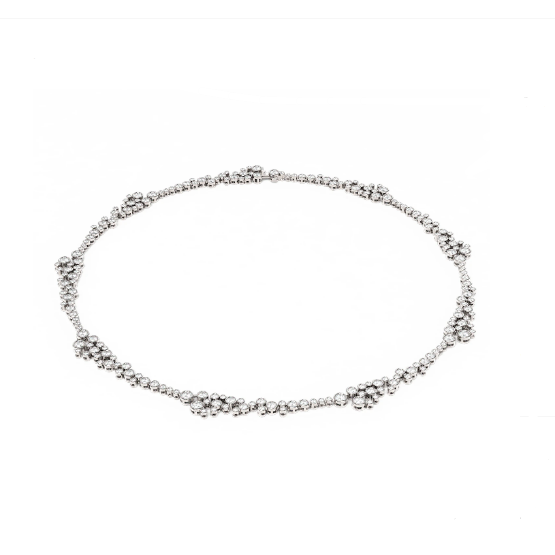 Luxury Designer Brand Necklace 18K White gold, Necklace Size is 16 inches, can custom fit length, Necklace measuring approx. 1/3x16 inch,Main stone 3.36 carat total weight containing 24 pieces of I-J color with VS/SI quality Round shape cut Diamond , Stone #2 11.78 carat total weight containing 291 pieces of I-J color with VS/SIquality Round shape cut Diamond