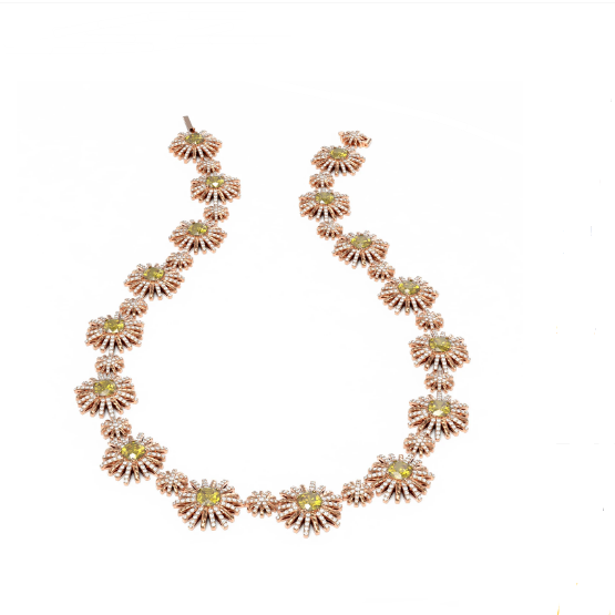 18K Rose Gold Sunflower Fully Paved Diamond Canary Citrine Necklace