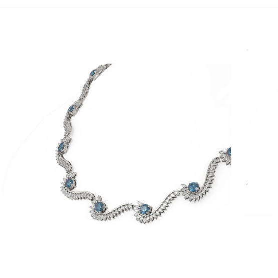 18K Yellow Gold Intense Blue Diamond Waving Necklace