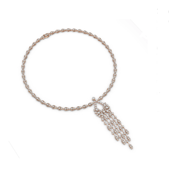 18K Rose Gold Floral Dangling Diamond Collar Necklace