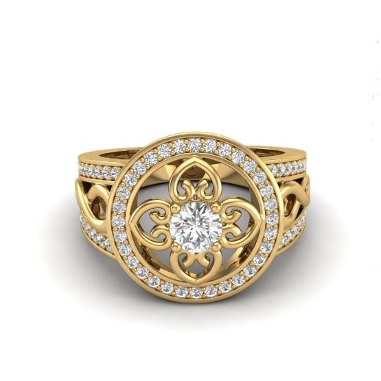 18K Yellow Gold 4 Lucky Hearts Diamond Art Deco Ring for Valentine's Day