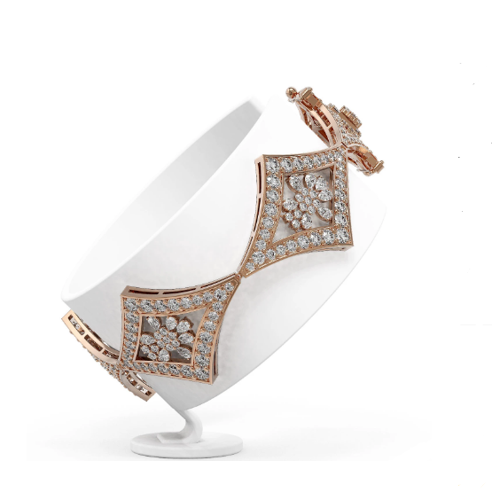 18K Rose Gold Lozenge Pear Diamond Floral Paved Bracelet