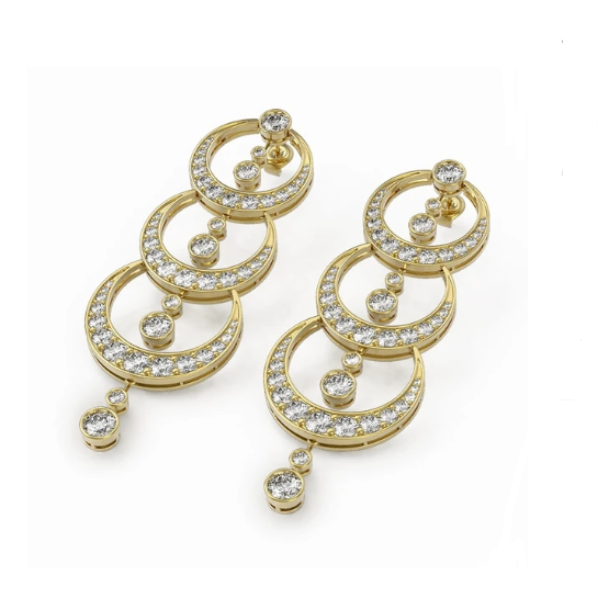 Yellow Gold Level Round Shape Moons Dangling Earring